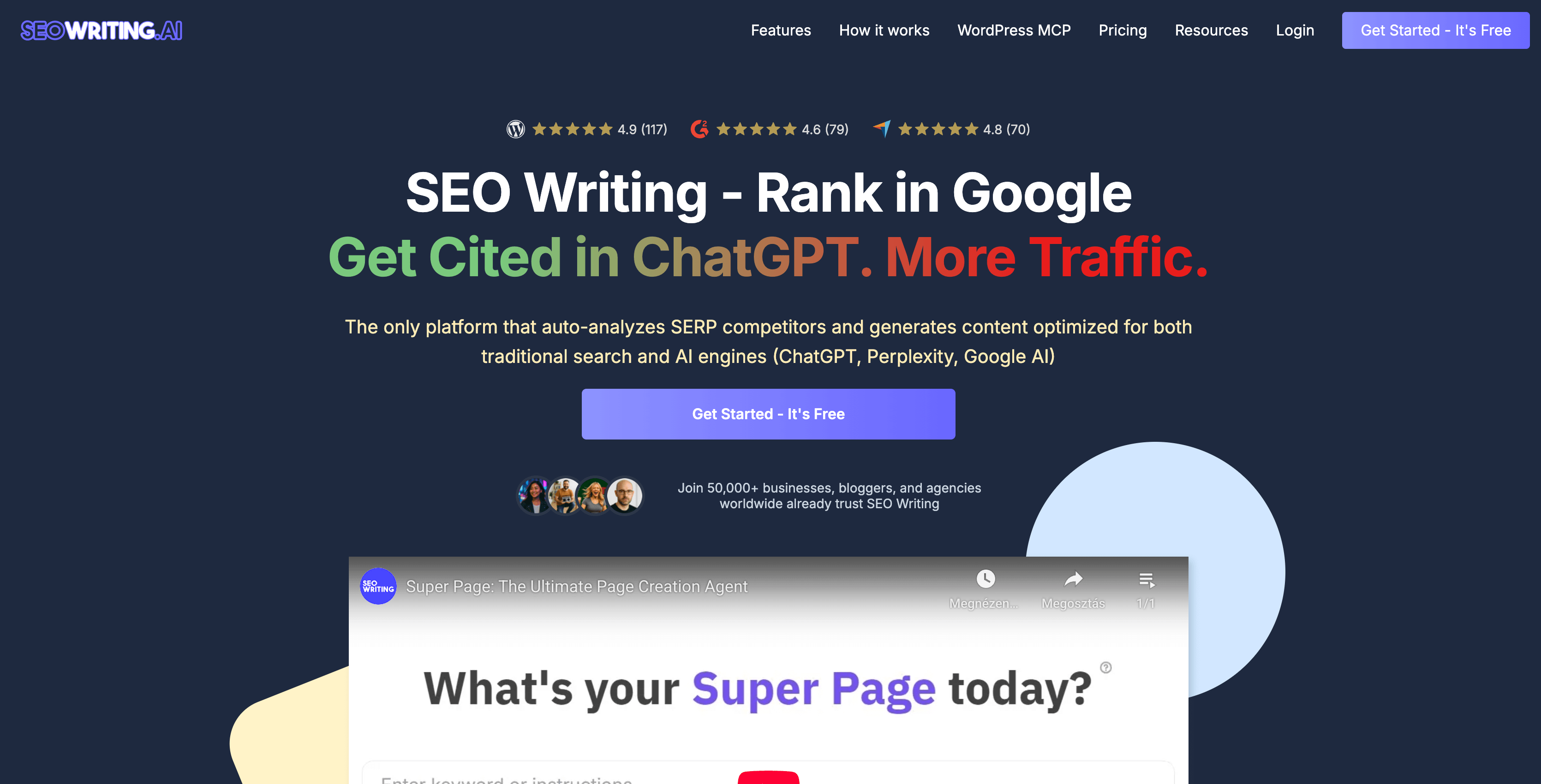 If your #1 goal is organic traffic, SEOWriting AI is the most clearly SEO-focused seo ai writing tool option in this set. It’s a strong choice when you want your drafting process to start with SEO structure.